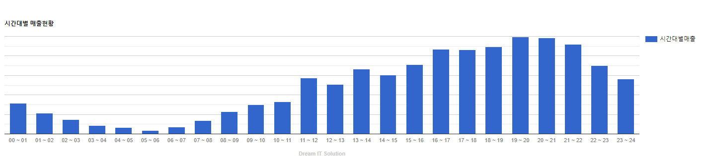 도그마캣 전가맹점 매출은 아침 07 ~ 20시까지 상승 곡선을 이루며 발생하며