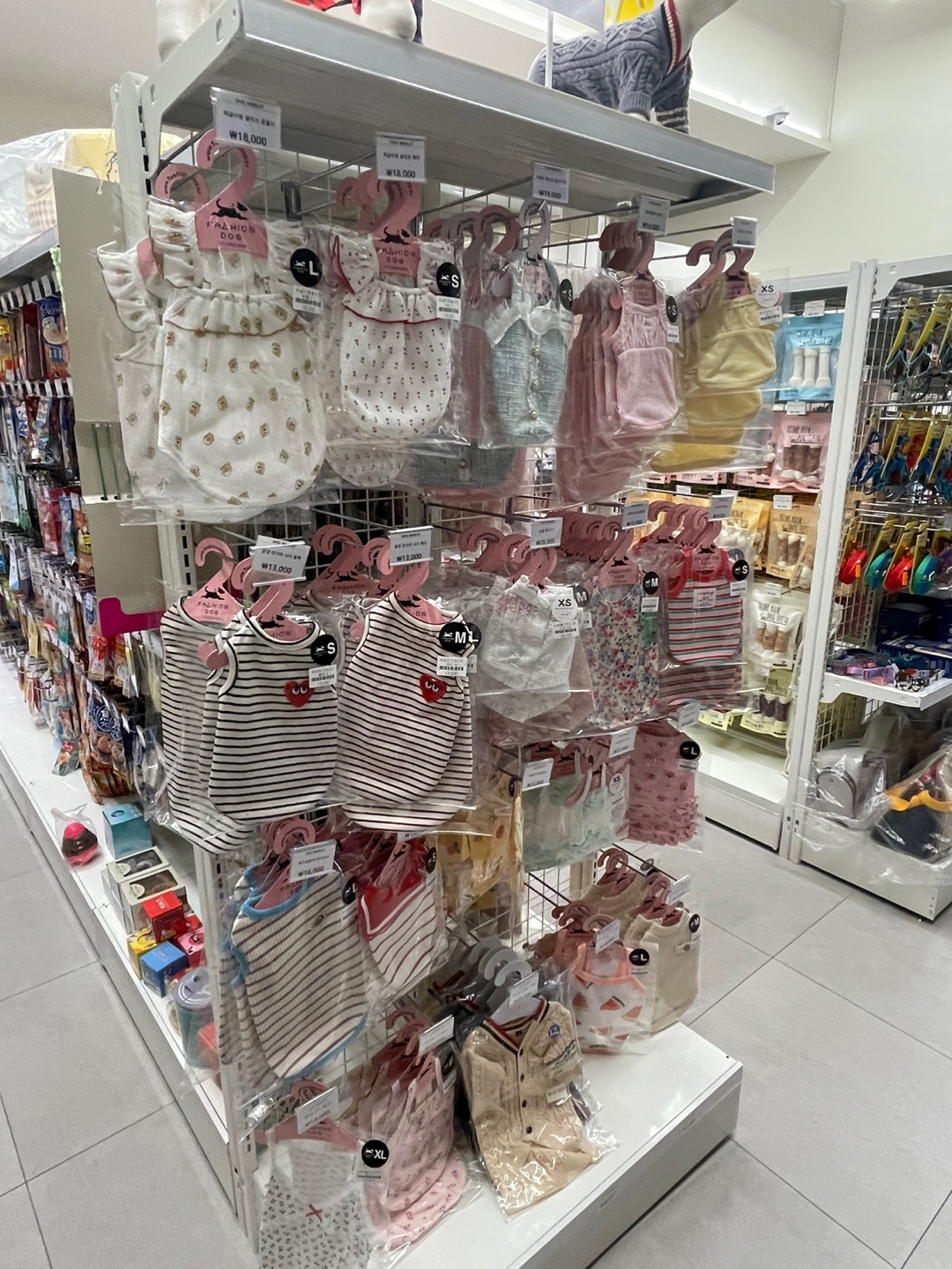 가게는 항상 청결하게 그리고 장난감 의류 등은